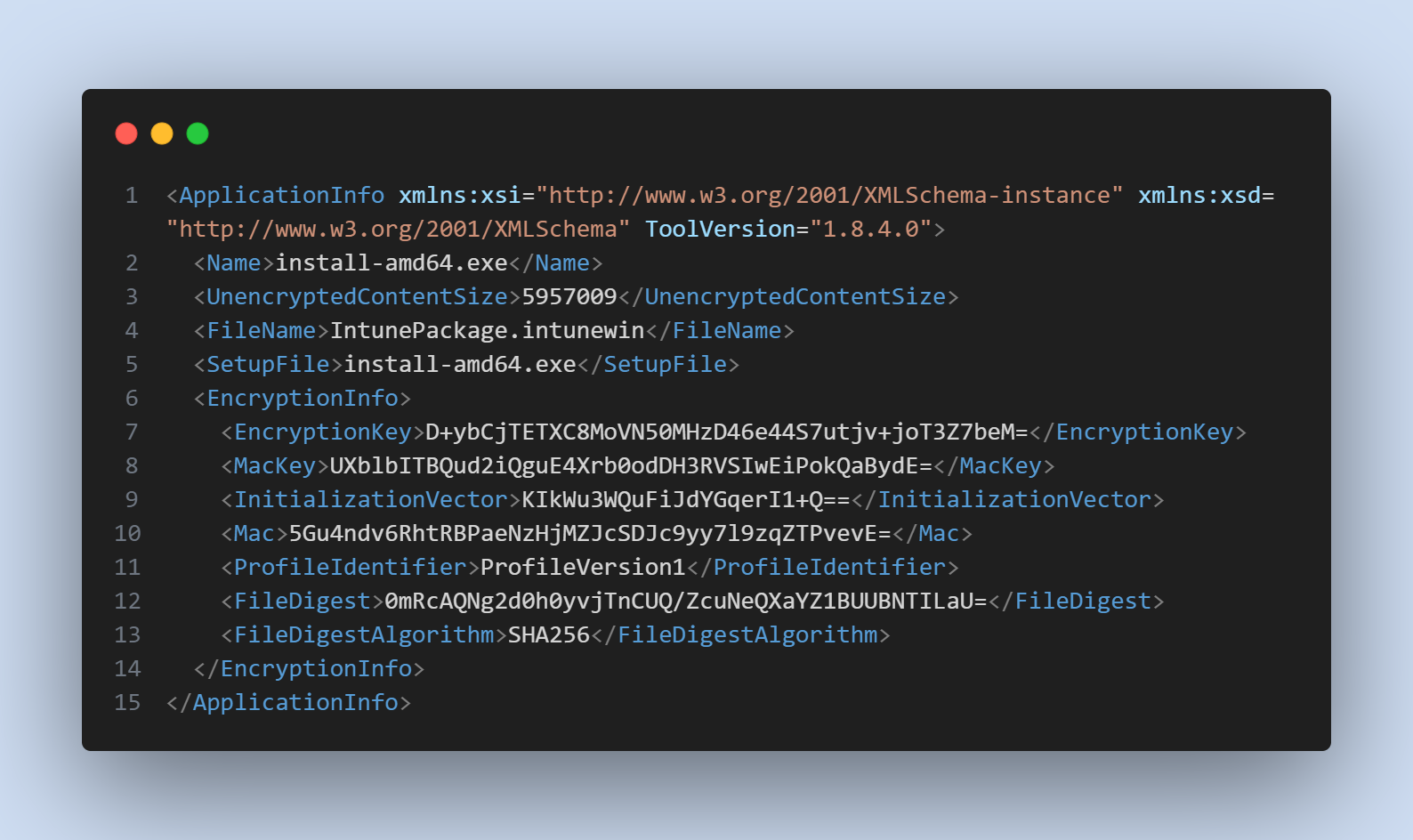 EncryptionKeyandInitializationVectormight be used to decrypt theIntunePackage.intunewinfile. - The